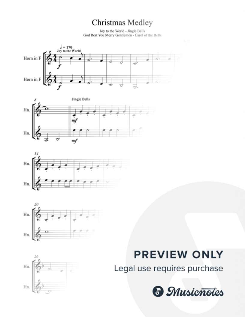 CHRISTMAS MEDLEY - French Horn Duet - Carol of the Bells - Joy to the World - Jingle Bells - God Rest You Merry Gentlemen |