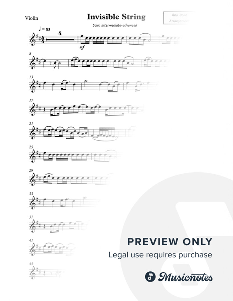 This is my own version of 'invisible string' exactly how I play it on streaming platforms. All rights belong to Taylor Swift. This is merely a creative arrangement and interpretation of the song, arranged for weddings, for an intermediate-advanced level violinist.