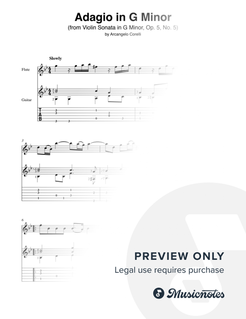 Adagio in G Minor (from Violin Sonata in G Minor, Op. 5, No. 5) for flute and guitar |