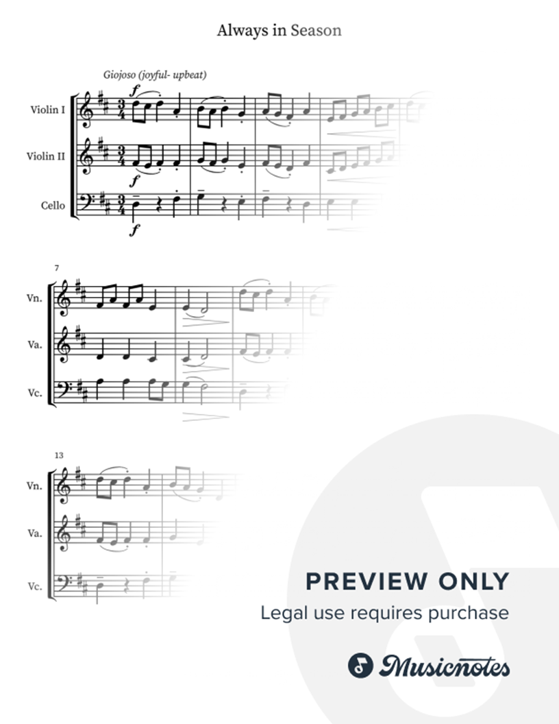 Enthusiastic trio by Melissa Blanton scored for two violins and cello!