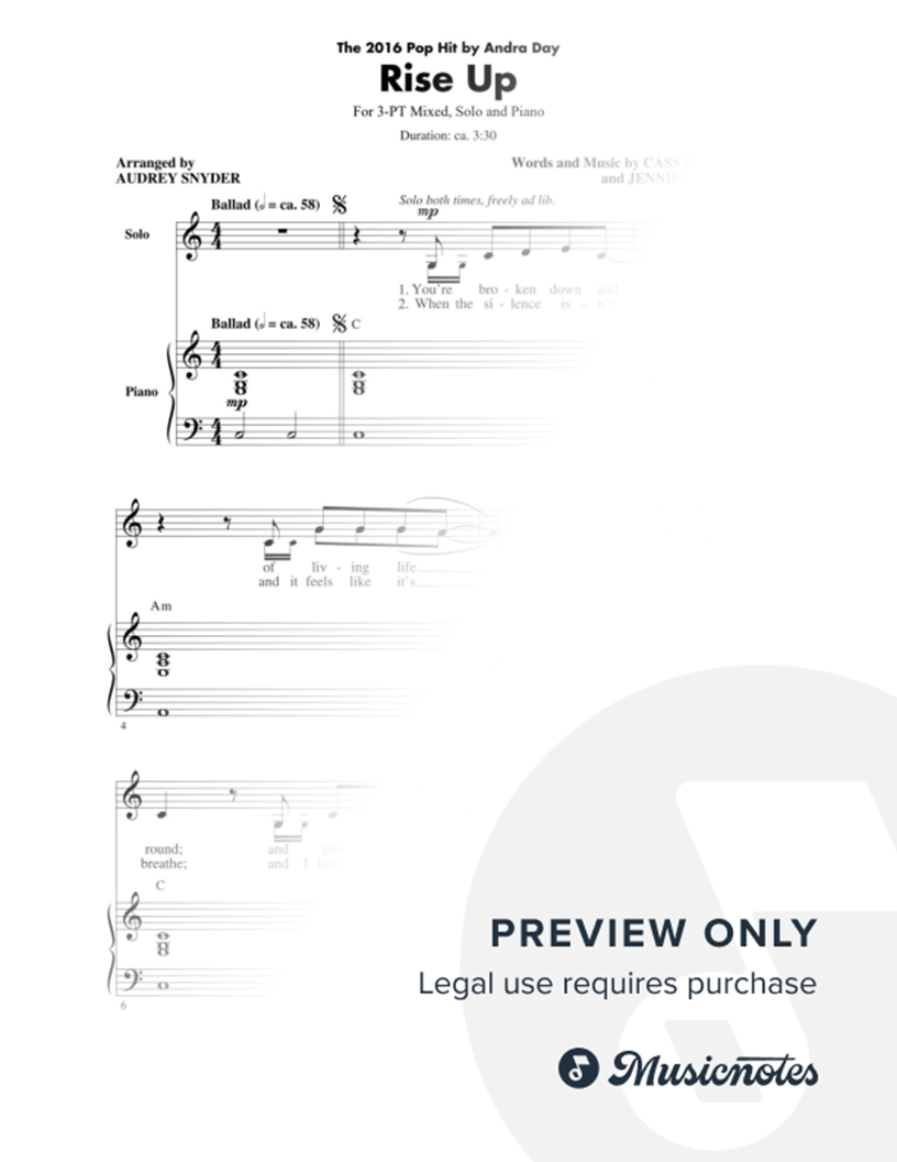 Many of the arrangements on Musicnotes have transpositions available, typically in C Major, as well as 3 sharps and 3 flats. If you do not see your desired key, you can request a transposition by reaching out to Customer Support.