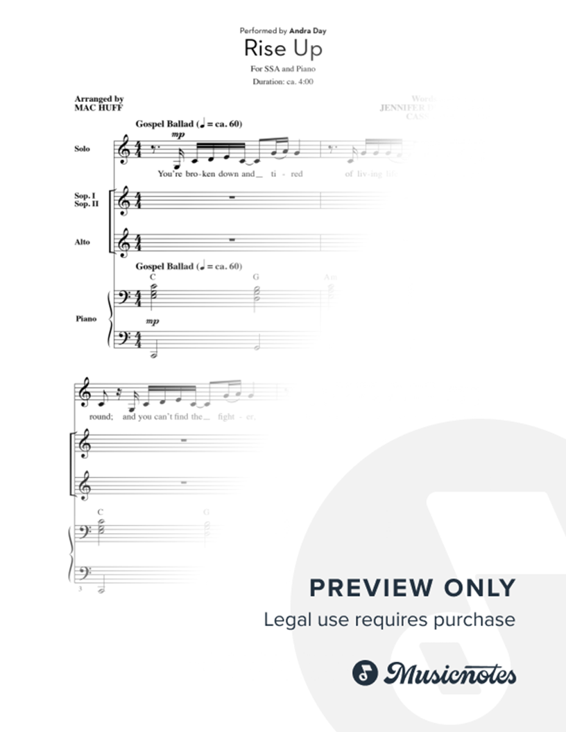 Many of the arrangements on Musicnotes have transpositions available, typically in C Major, as well as 3 sharps and 3 flats. If you do not see your desired key, you can request a transposition by reaching out to Customer Support.