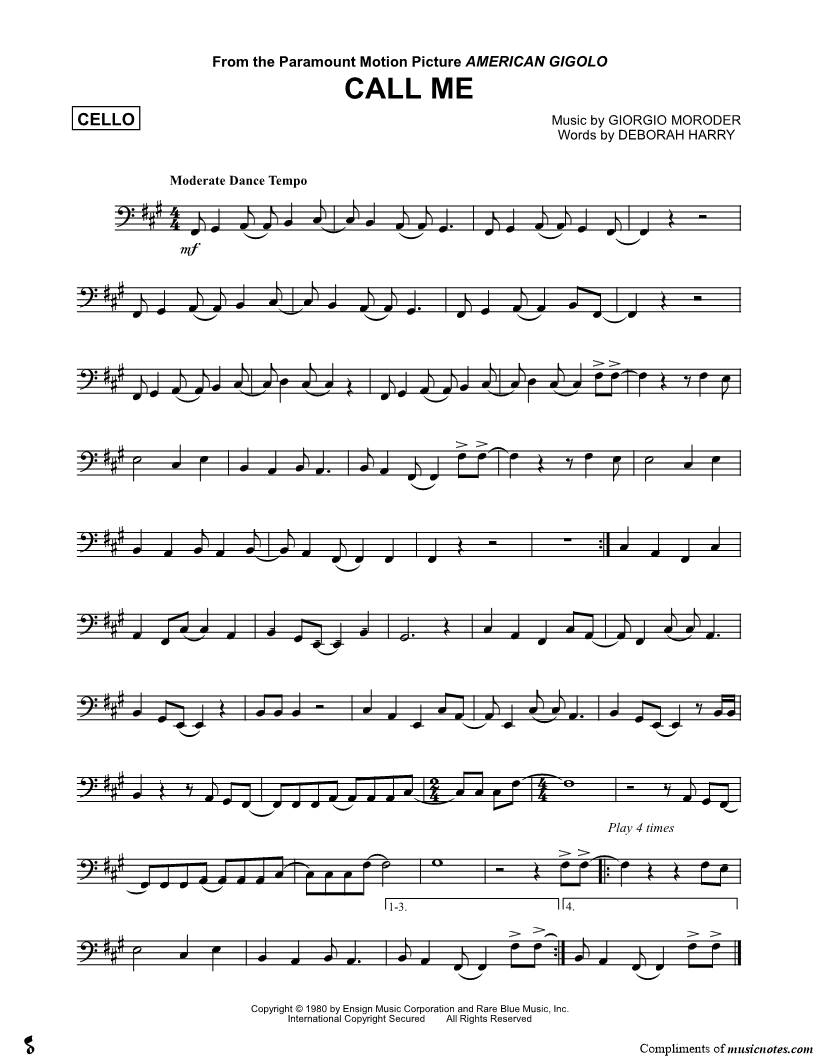 Cello, range: E2-G#3 | |