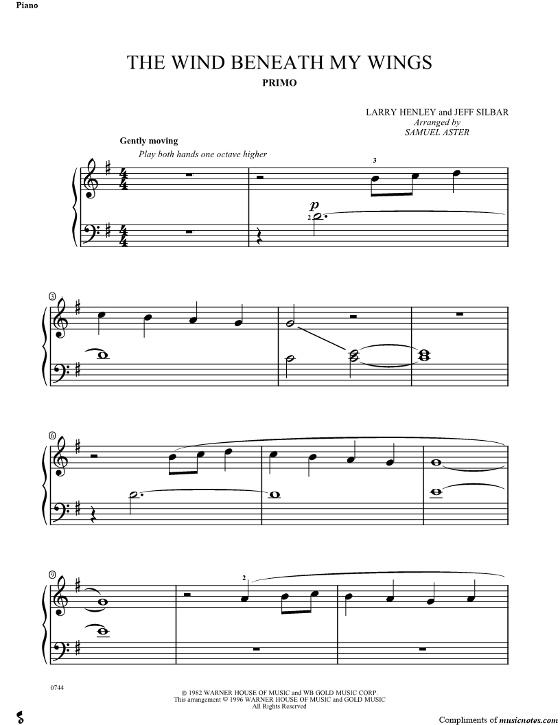 2. The Wind Beneath My Wings (click here to preview and play this piece) Performer: Composer: Scored For:Instrumental Part Instrument:Piano Number of pages:3 Click here to purchase this piece separately for $4.99 |