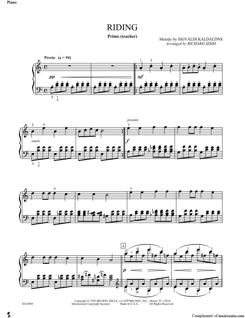 2. Riding (click here to preview and play this piece) Composer: Scored For:Instrumental Part Instrument:Piano Number of pages:2 Click here to purchase this piece separately for $4.99 |