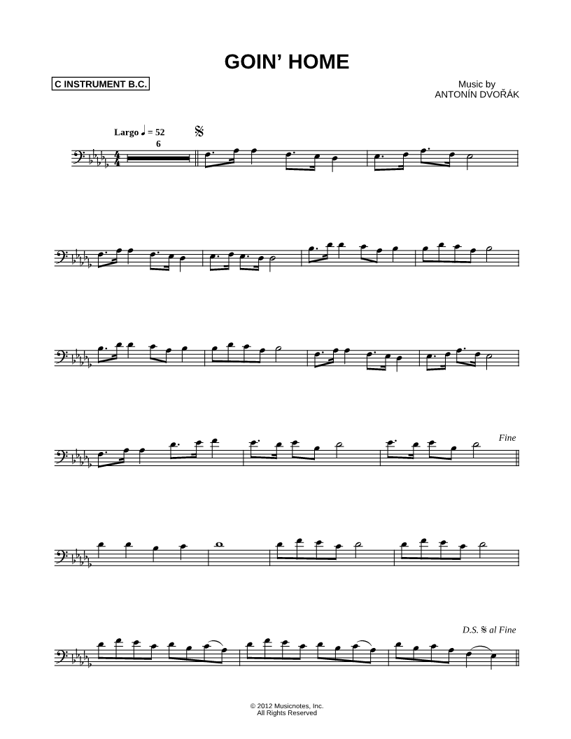 1. Goin' Home - Bass Clef Instrument (click here to preview and play this piece) Composer: Lyricist: Scored For:Instrumental Solo and Instrumental Part Instruments:Tuba, Bass Clef Instrument, Cello, Double Bass, Trombone, Bassoon and Baritone Horn Number of pages:1 Click here to purchase this piece separately for $4.99 |