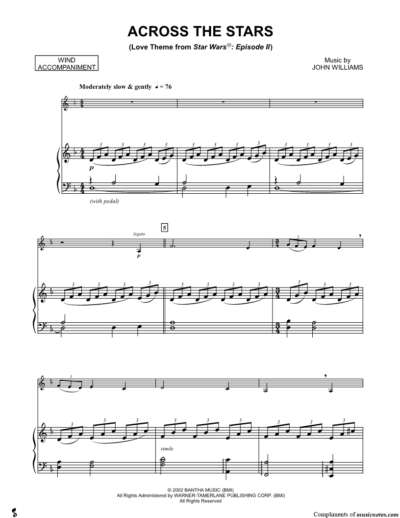 1. Across the Stars - Piano Accompaniment (click here to preview and play this piece) Composer: Scored For:Solo & Accompaniment and Instrumental Part Instruments:Piano Accompaniment, C Instrument, range: A3-G5, Violin, Oboe, Flute and Recorder Number of pages:6 Click here to purchase this piece separately for $5.99 |