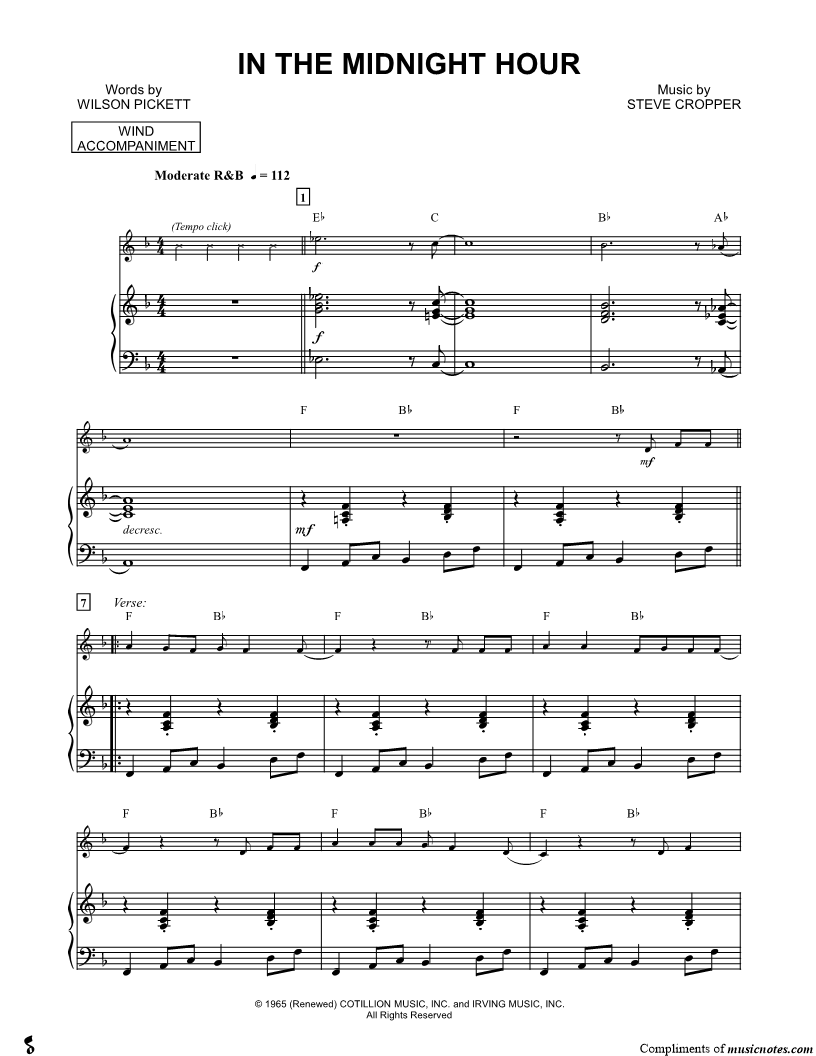 1. In the Midnight Hour - Piano Accompaniment (Winds) (click here to preview and play this piece) Performer: Composer: Scored For:Solo & Accompaniment and Instrumental Part Instruments:Piano Accompaniment, C Instrument, Violin, Oboe, Flute and Recorder Number of pages:4 Click here to purchase this piece separately for $5.99 |