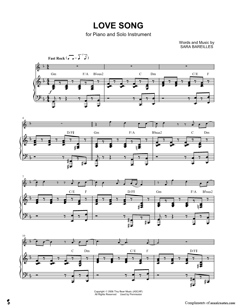 1. Love Song - Piano Accompaniment (click here to preview and play this piece) Performer: Composer: Lyricist: Scored For:Solo & Accompaniment and Instrumental Parts Instruments:Piano Accompaniment, C Instrument, range: F4-D6, Violin, Oboe, Flute and Recorder Number of pages:10 Click here to purchase this piece separately for $5.99 |