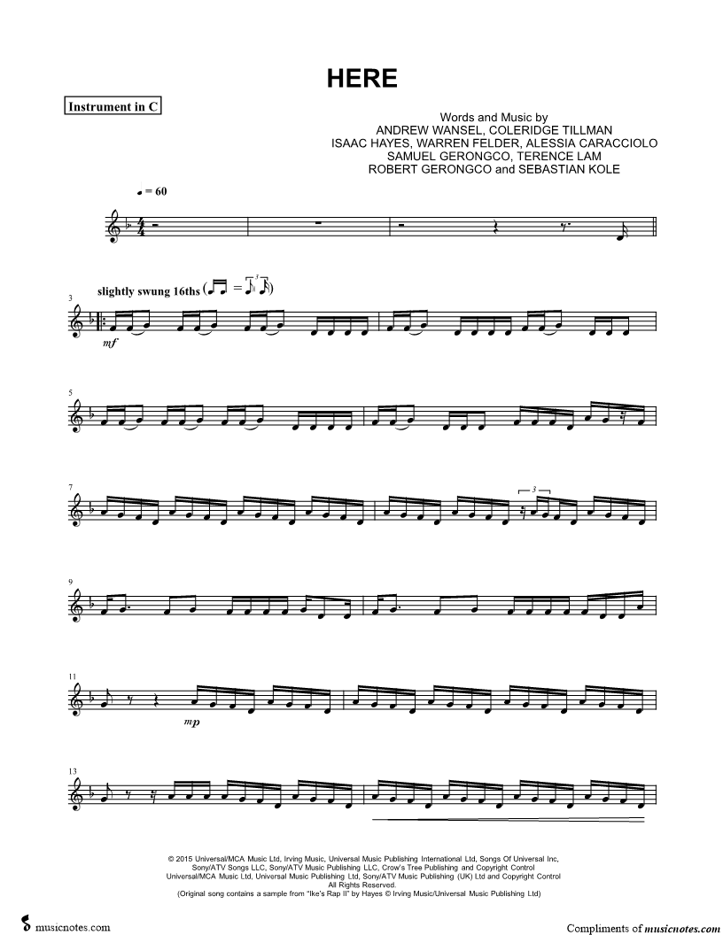 1. Here - C Instrument (click here to preview and play this piece) Performer: Composers: Lyricists: Scored For:Instrumental Part and Instrumental Solo Instruments:C Instrument, range: C4-Bb4, Flute, Violin, Oboe and Recorder Number of pages:2 Click here to purchase this piece separately for $4.99 |