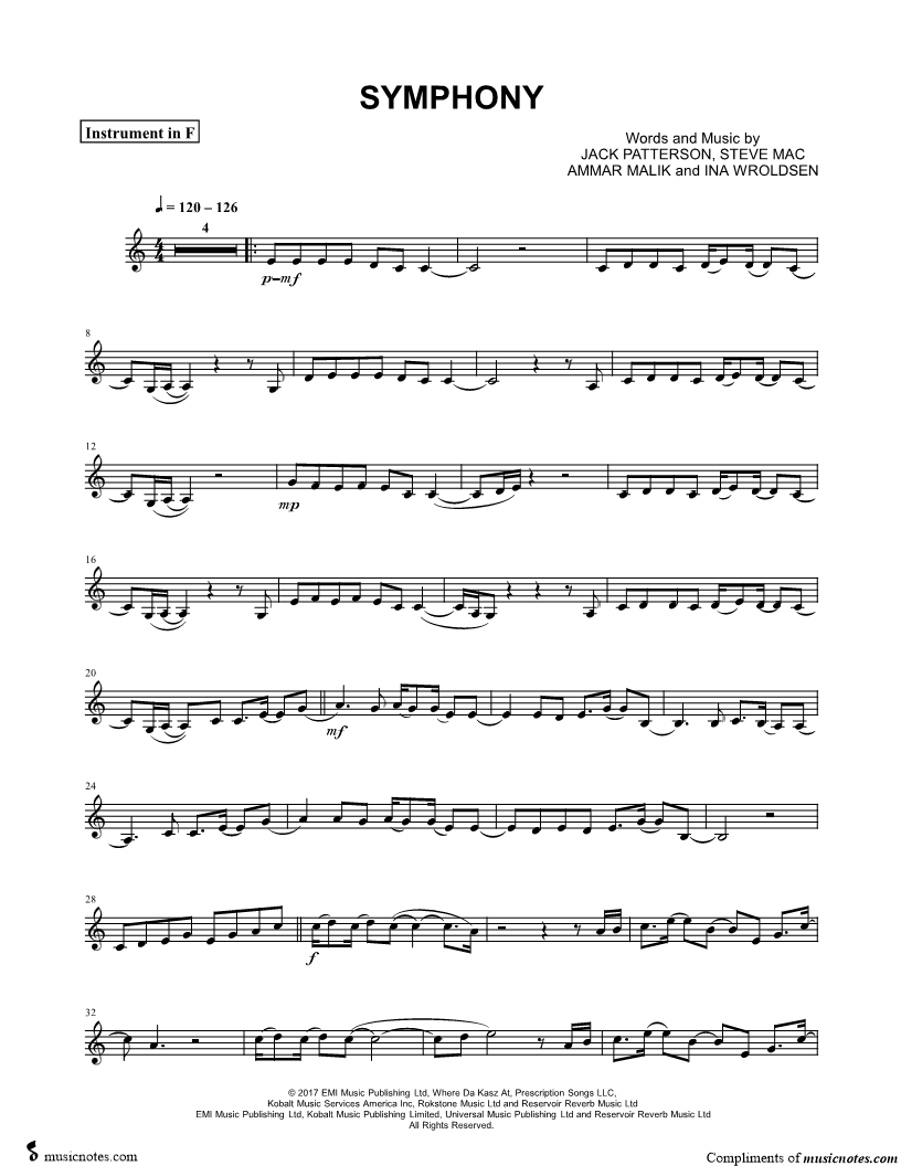1. Symphony - F Instrument (click here to preview and play this piece) Performers: Composers: Lyricists: Scored For:Instrumental Part and Instrumental Solo Instruments:F Instrument, range: G3-E5 and French Horn Number of pages:2 Click here to purchase this piece separately for $4.99 |