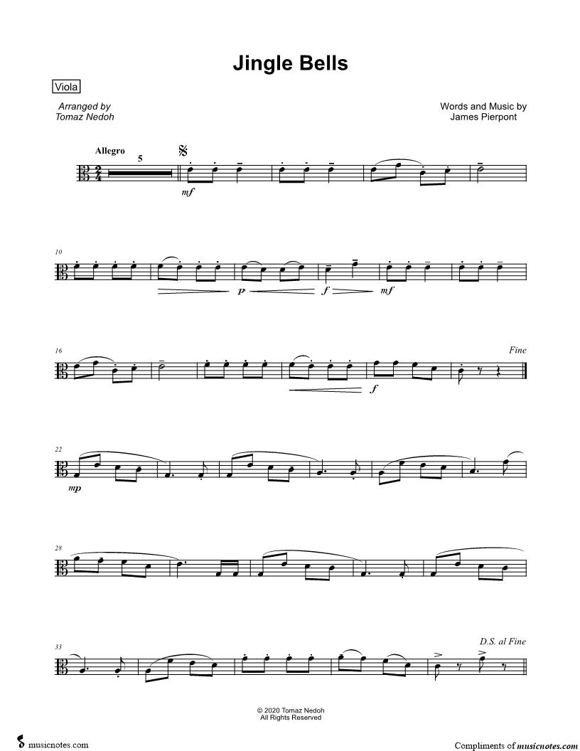 1. Jingle Bells - Viola (click here to preview and play this piece) Performer: Composer: Lyricist: Scored For:Instrumental Solo and Instrumental Part Instrument:Viola, range: G3-A4 Number of pages:1 Click here to purchase this piece separately for $2.99 |