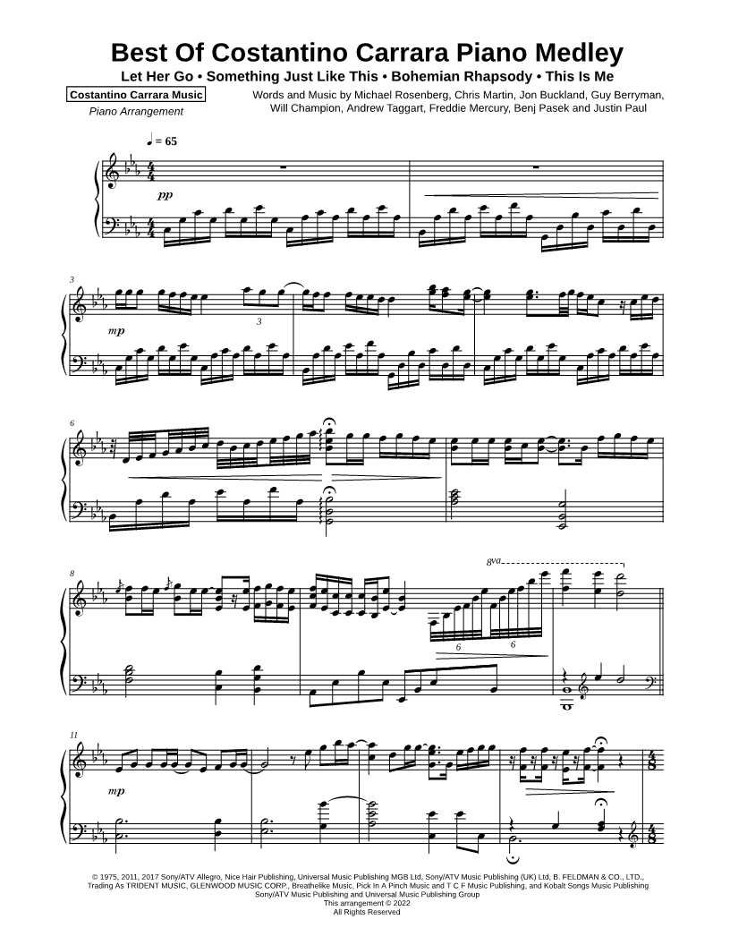 1. Best of Costantino Carrara Piano Medley (click here to preview and play this piece) Performers: Composers: Lyricists: Scored For:Instrumental Solo Instrument:Piano Number of pages:7 Click here to purchase this piece separately for $9.99 |
