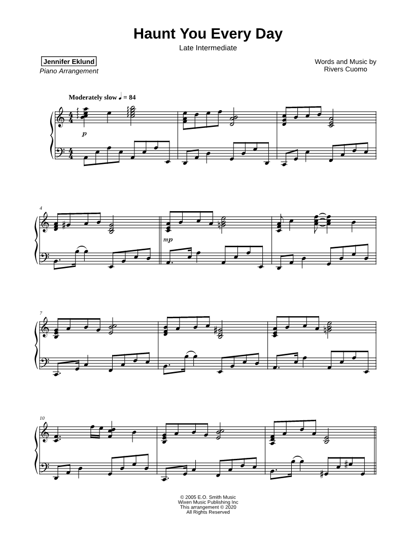 1. Haunt You Every Day [late intermediate] (click here to preview and play this piece) Performers: Composer: Lyricist: Scored For:Instrumental Solo Instrument:Piano Number of pages:7 Click here to purchase this piece separately for $5.79 |