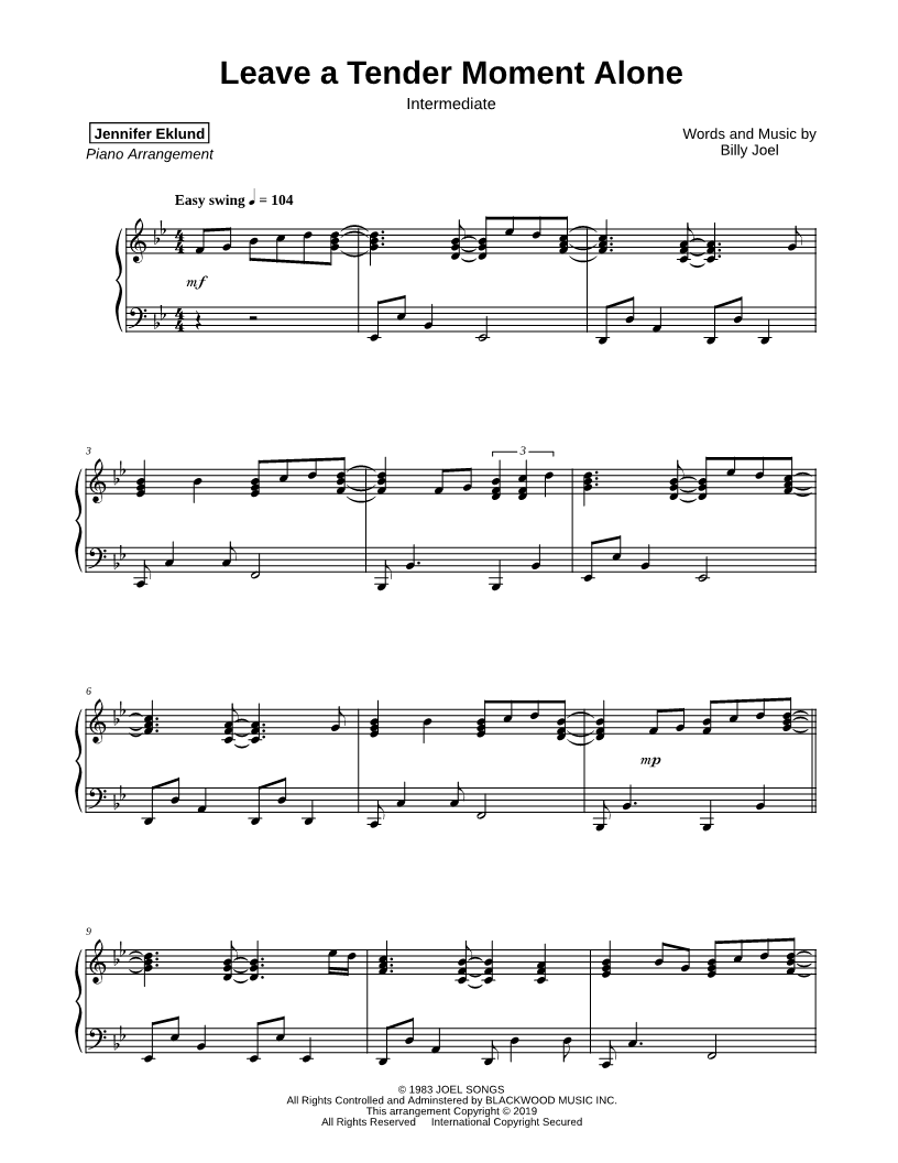 1. Leave a Tender Moment Alone [intermediate] (click here to preview and play this piece) Performers: Composer: Lyricist: Scored For:Instrumental Solo Instrument:Piano Number of pages:7 Click here to purchase this piece separately for $5.79 |