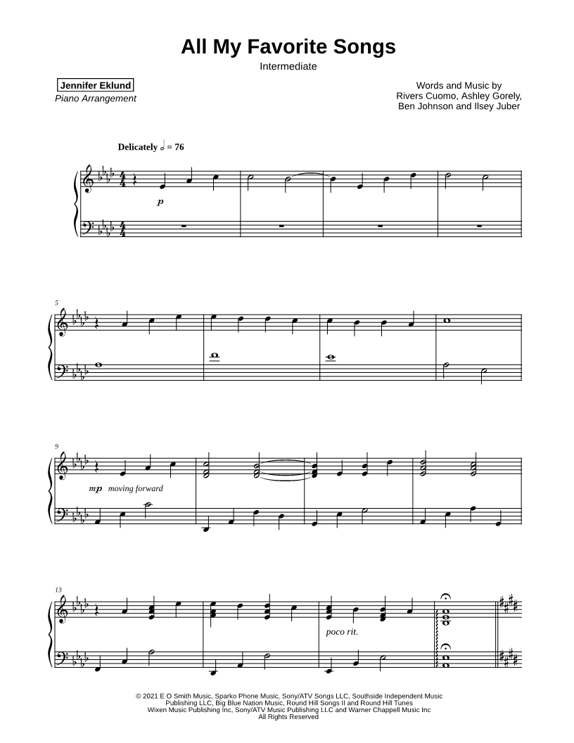 1. All My Favorite Songs [intermediate] (click here to preview and play this piece) Performers: Composers: Lyricists: Scored For:Instrumental Solo Instrument:Piano Number of pages:7 Click here to purchase this piece separately for $5.79 |