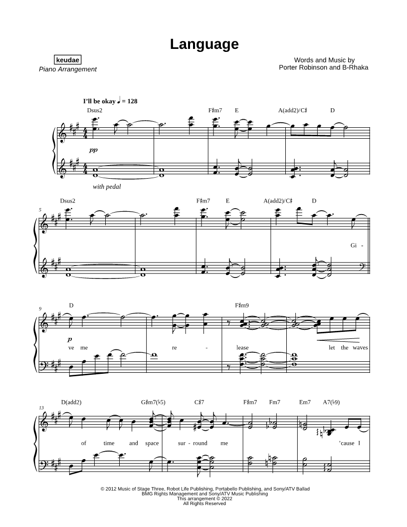 Instrumental Solo Piano/Vocal/Chords |