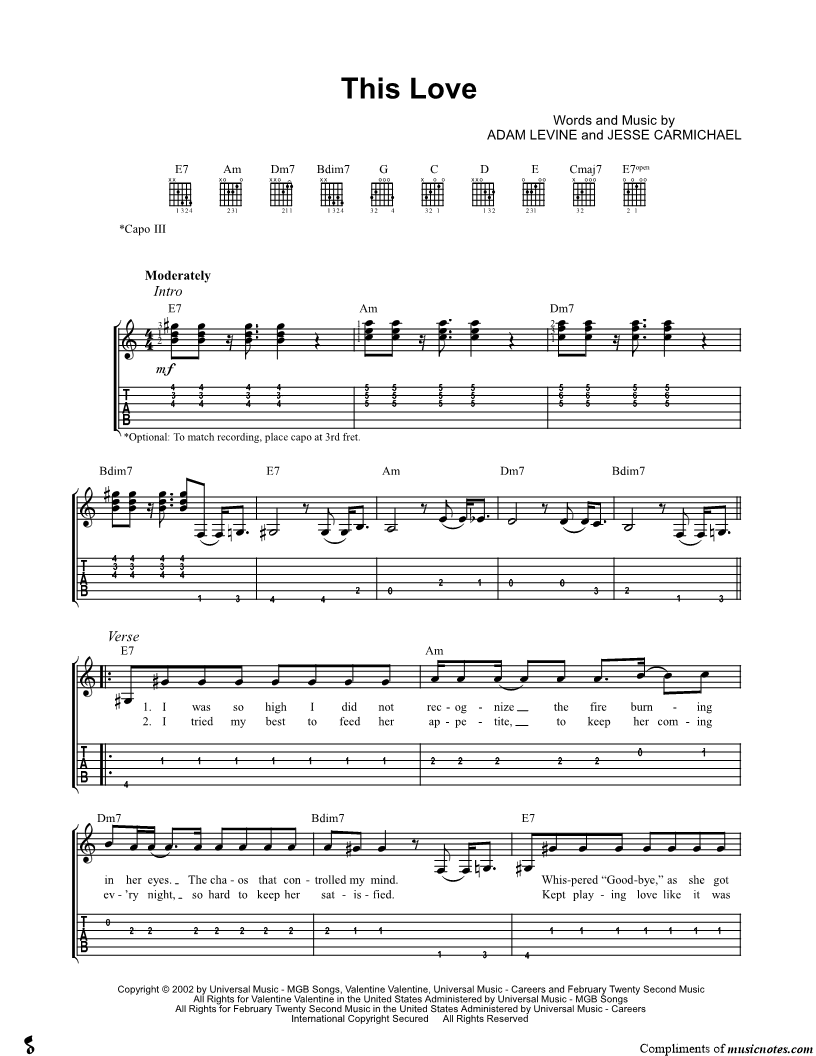 Guitar Tab Guitar/Vocal/Chords |