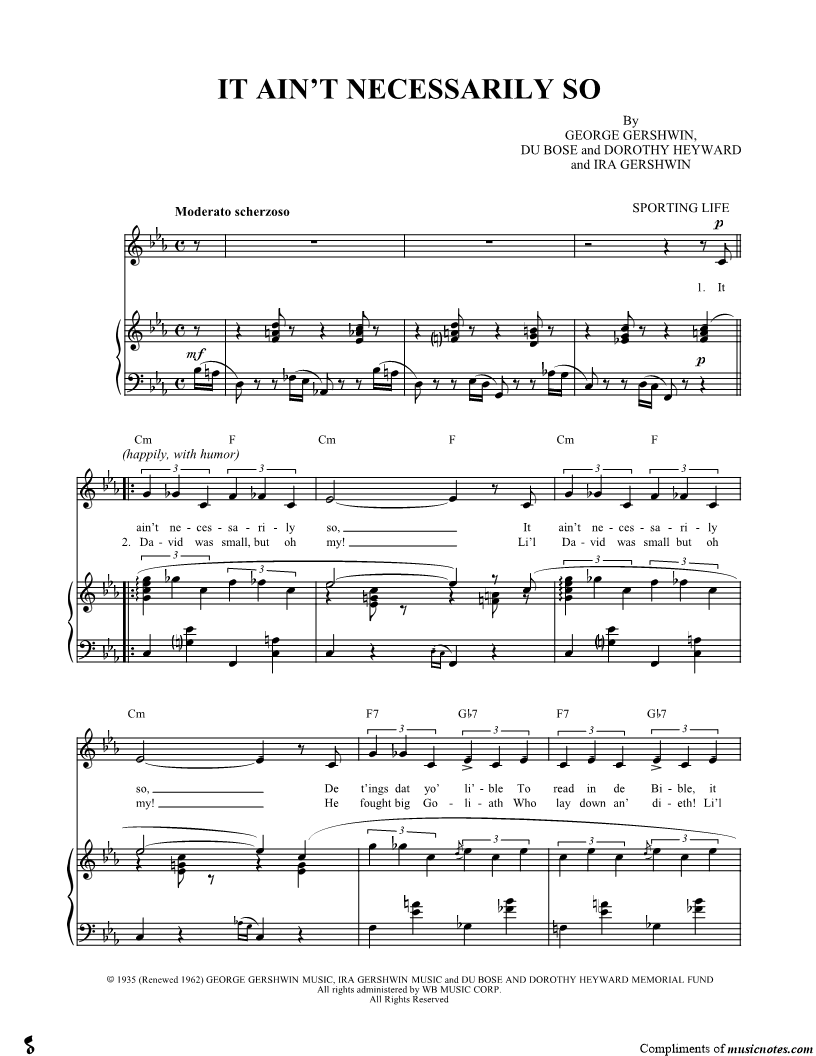 It ain't necessarily so, It ain't necessarily so, De t'ings dat yo' li'ble To read in de Bible, it ain't necessarily so. |