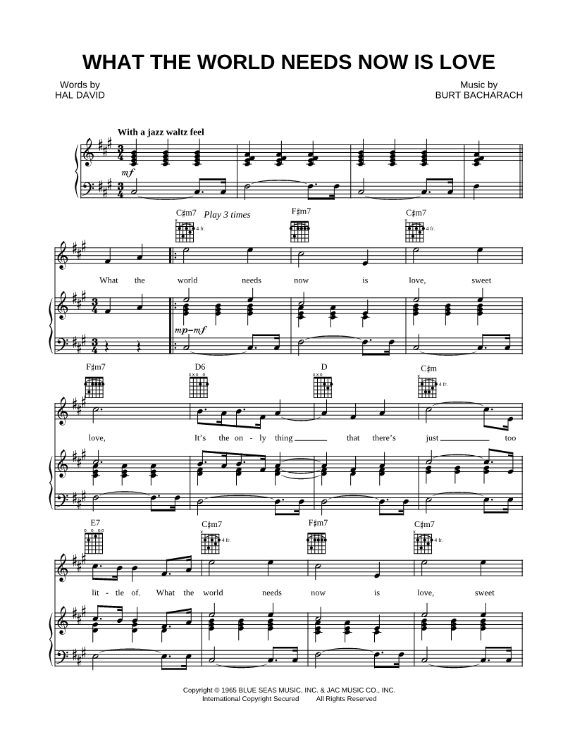 What the world needs now is love, sweet love, It's the only thing that there's just too little of. |