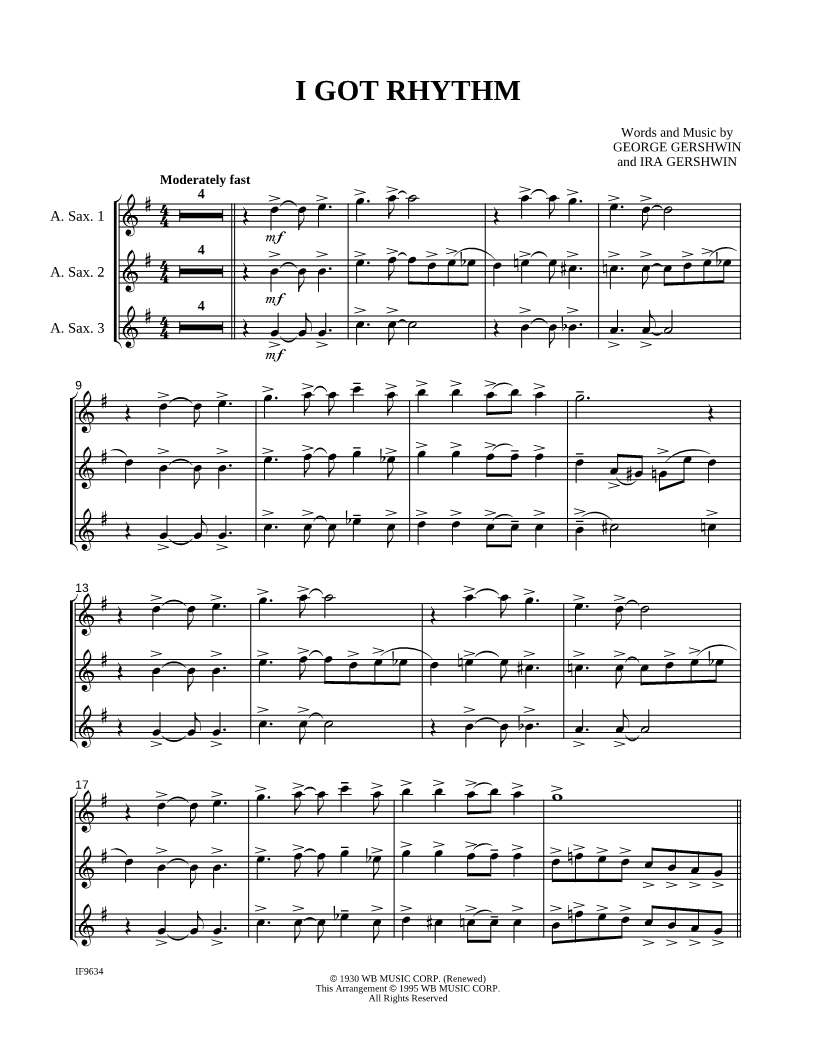 Alto Saxophone 1, range: G4-D6 Alto Saxophone 2, range: F#4-A5 Alto Saxophone 3, range: F#4-F#5 | |