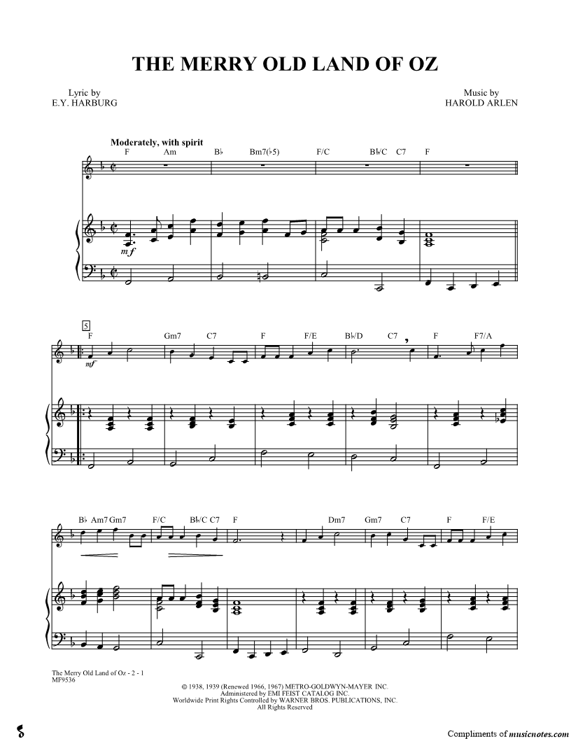 The Wizard of Oz - Piano Accompaniment |