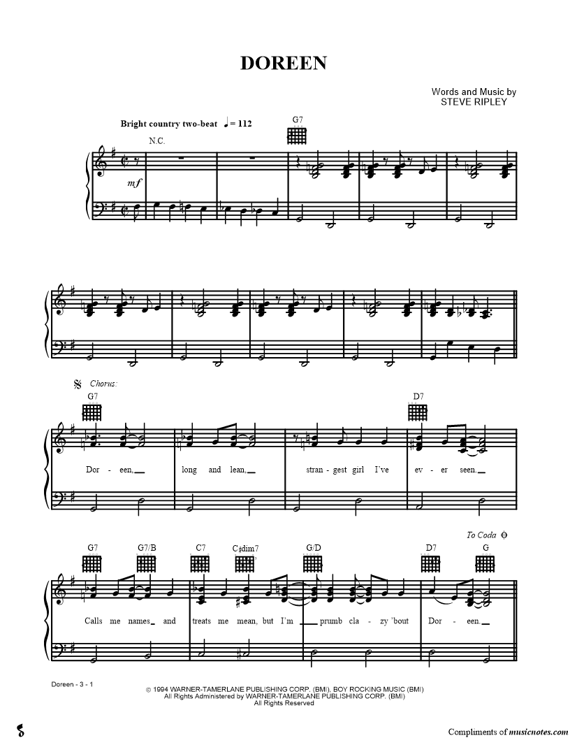 Doreen, long and lean, strangest girl I've ever seen. |