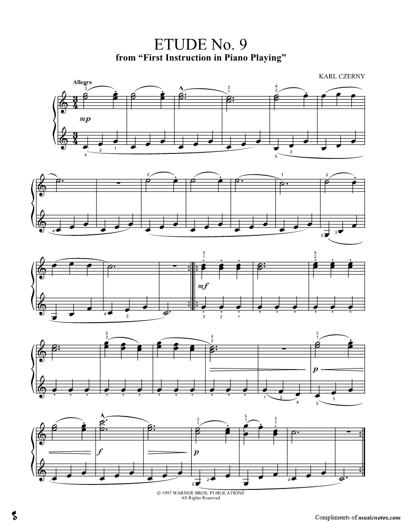 Etude No. 9, from "First Instruction In Piano Playing" |