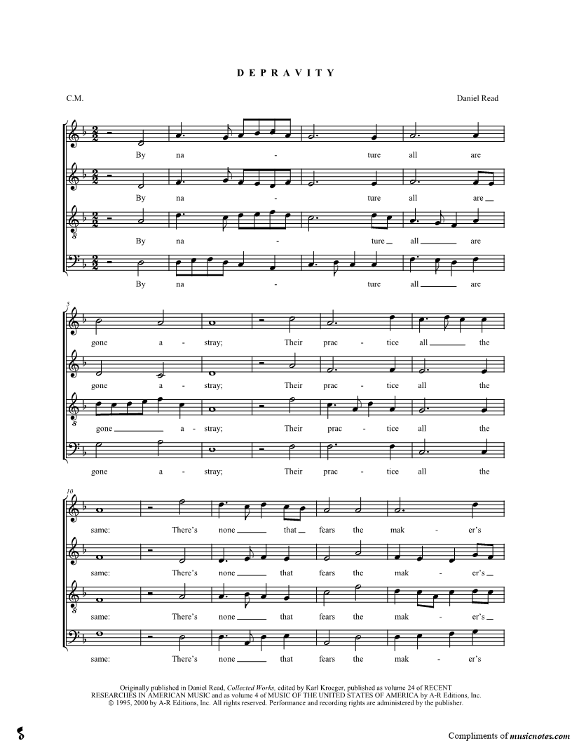 By nature all are gone astray; Their practice all the same There's none that fears the maker's hand; There's none that loves his name. |