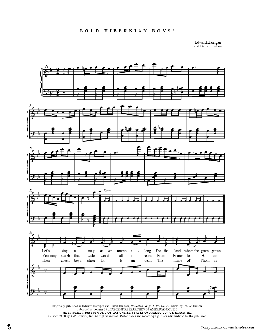 Let's sing a song as we march along For the land where the grass grows green, Our Em'rald Isle, where lassies smile Like a bright May morn sunbeam. |