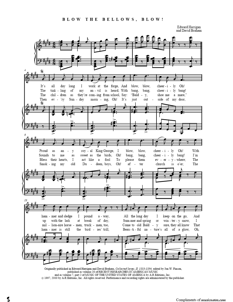 It's all day long I work at the forge, And blow, blow, cheerily Oh! |