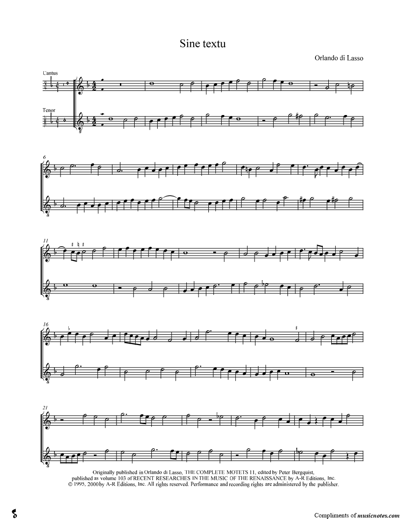 Tenor Voice, range: F3-A4 Cantus, range: F4-G5 2-Part Choir | |
