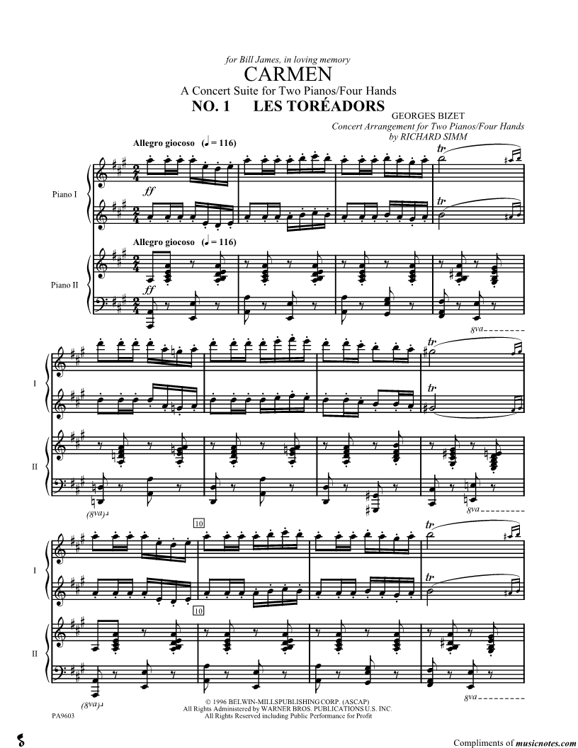Carmen A Concert Suite for Two Pianos, Four Hands |