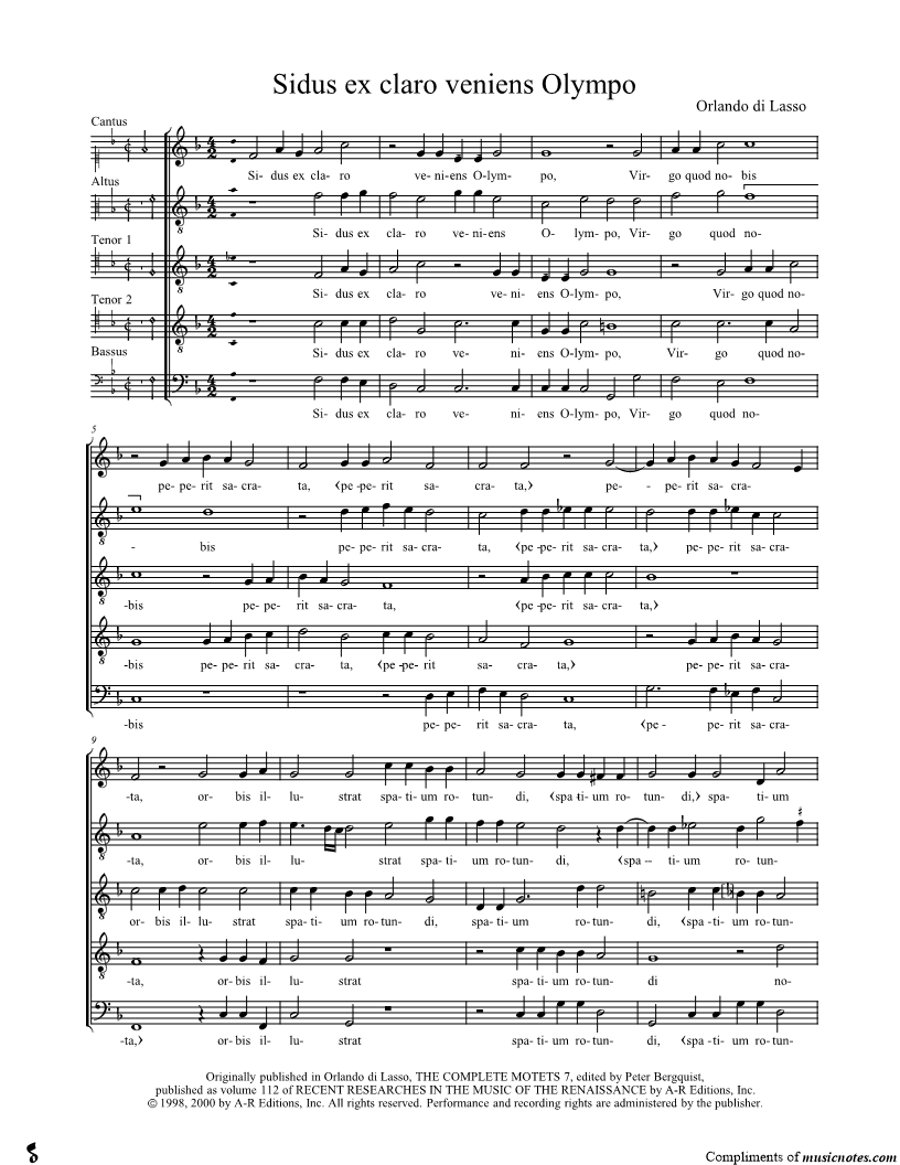 Sidus ex claro veniens Olympo, Virgo quod nobis peperit sacrata, orbis illustrat spatium rotundi nobile lumen. |