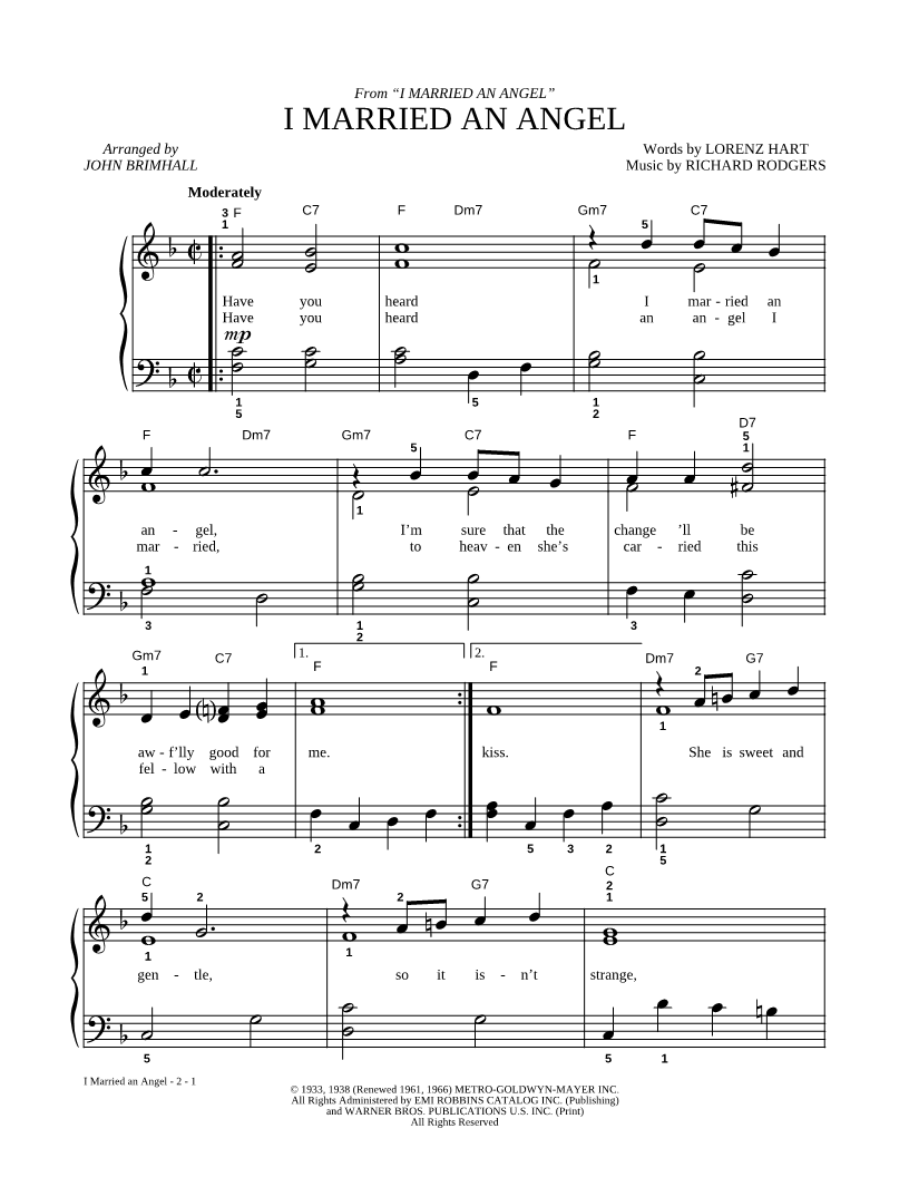 Have you heard I married an angel, I'm sure that the change 'll be awf'lly good for me. |