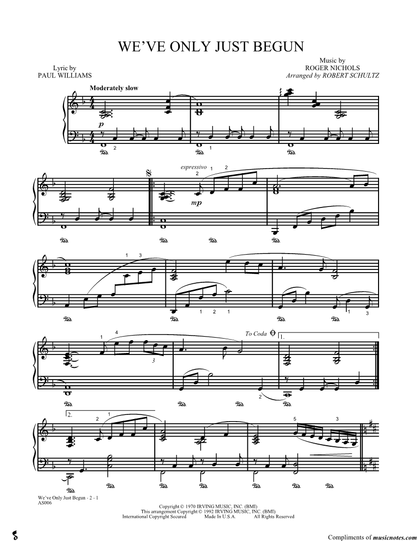 "This is a BEAUTIFUL arrangement of Weve Only Just Begun. The only challenging parts I fou..." Read reviews