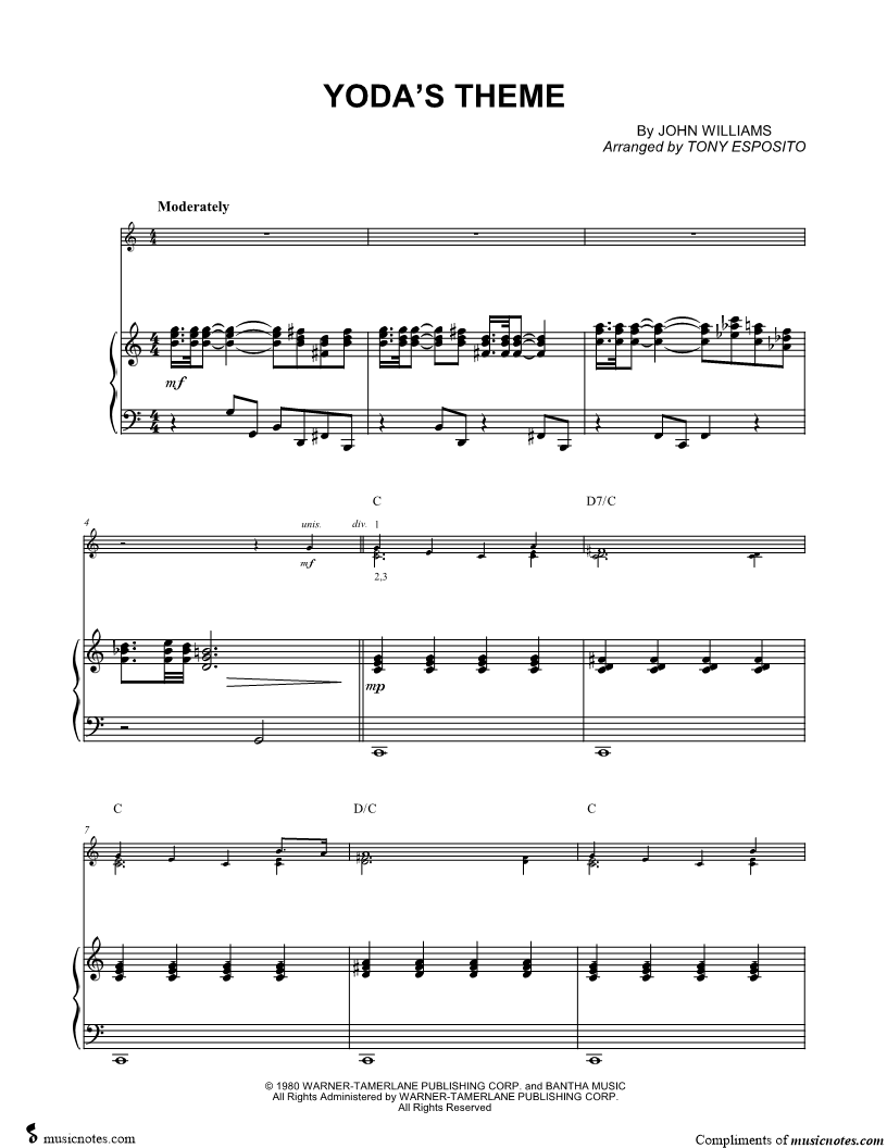 Yoda's Theme - F Instrument Trio & Piano