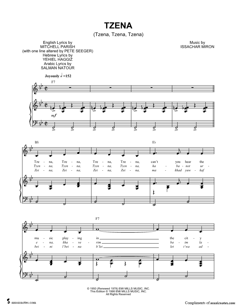 Tzena, Tzena, Tzena, Tzena, can't you hear the music playing in the city square? |