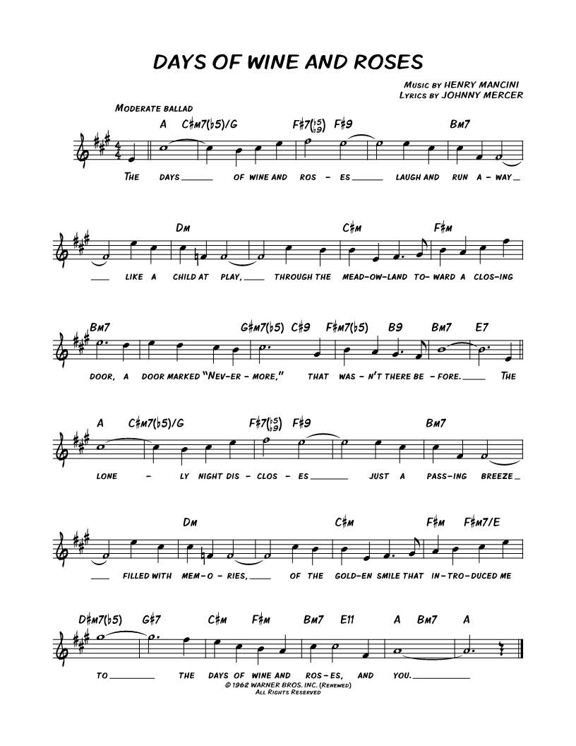 The days of wine and roses laugh and run away like a child at play, through the meadowland toward a closing door, a door marked ``Nevermore,'' that wasn't there before. |