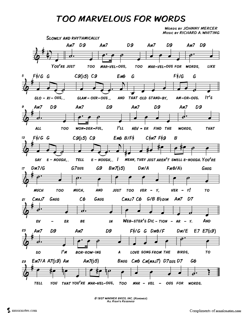 You're just too marvelous, too marvelous for words, like glorious, glamourous and that old standby, amorous. |