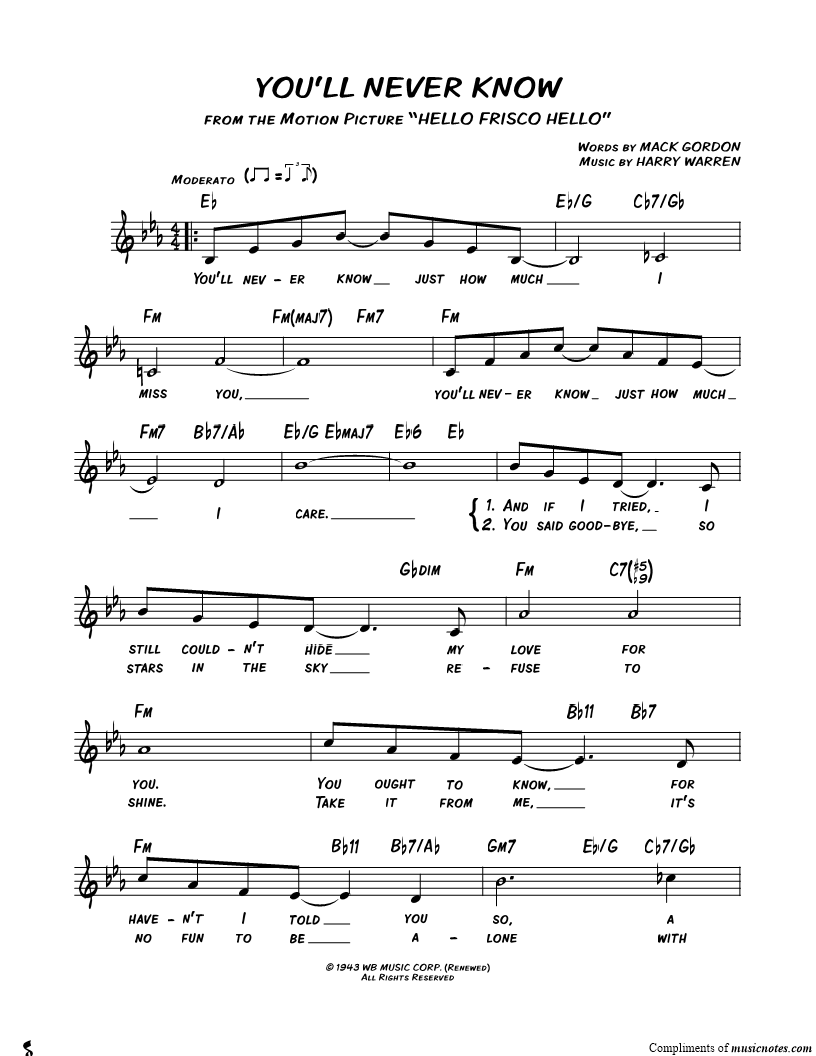 You'll never know just how much I miss you, you'll never know just how much I care. |