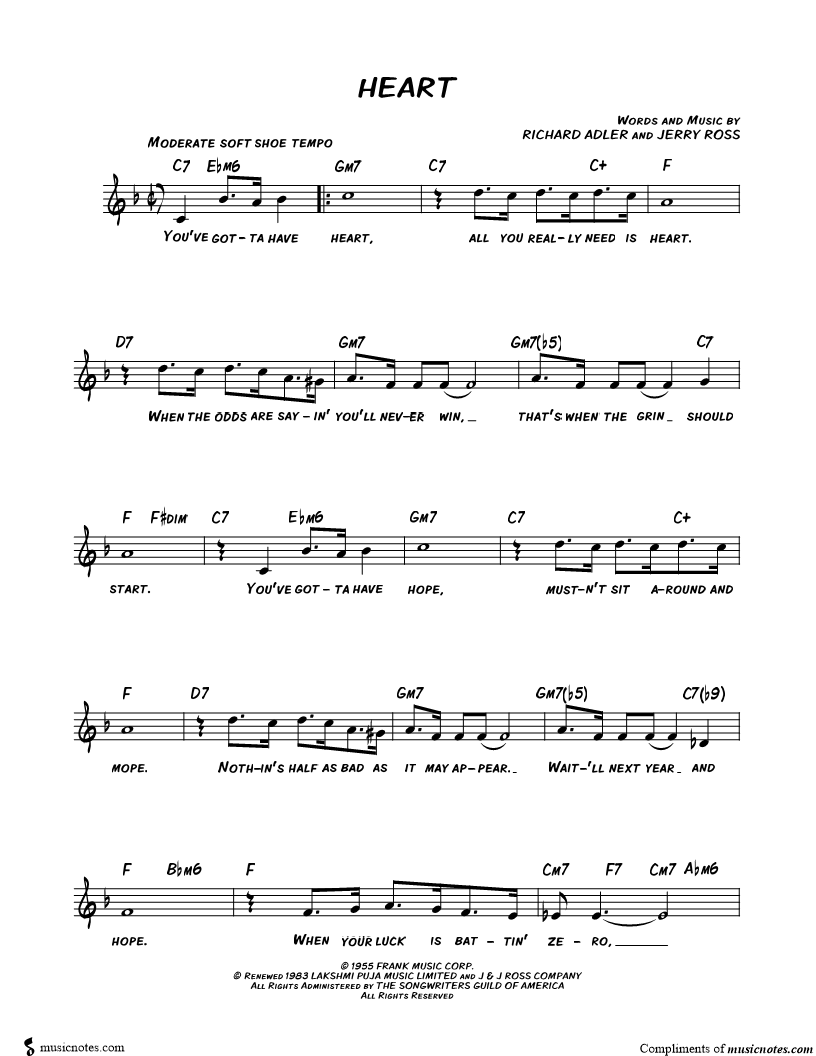 Leadsheets typically only contain the lyrics, chord symbols and melody line of a song and are rarely more than one page in length. Musicians will often use these skeletons to improvise their own arrangements. Leadsheets often do not contain complete lyrics to the song.