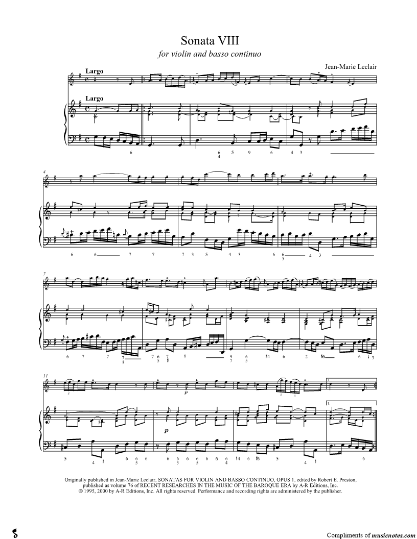 Sonata VIII for Violin and Basso Continuo - Keyboard |