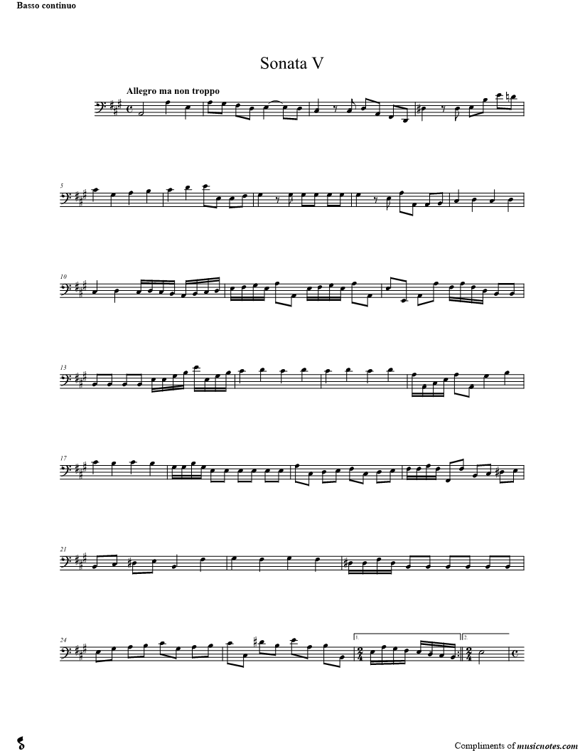 Sonata V for Violin and Basso Continuo - Continuo Part |