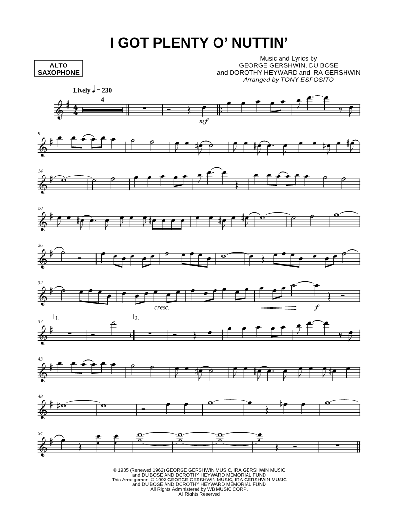 I Got Plenty o' Nuttin' - Alto Saxophone |