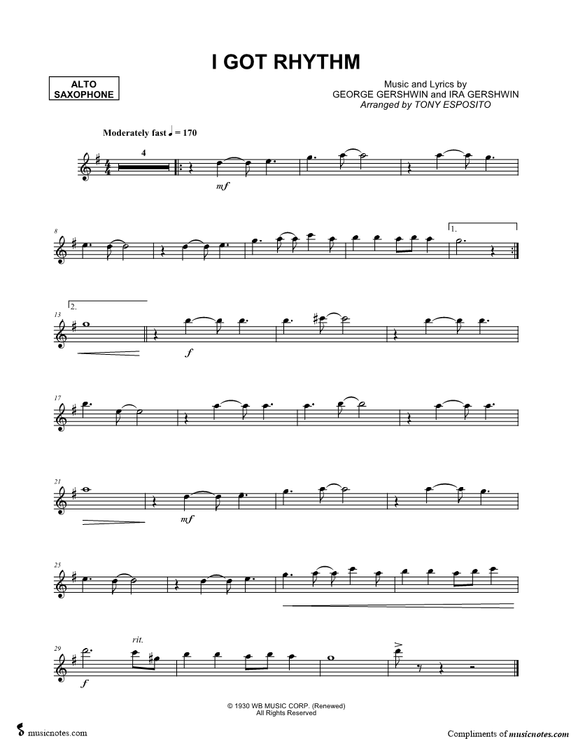 I Got Rhythm - Alto Saxophone |