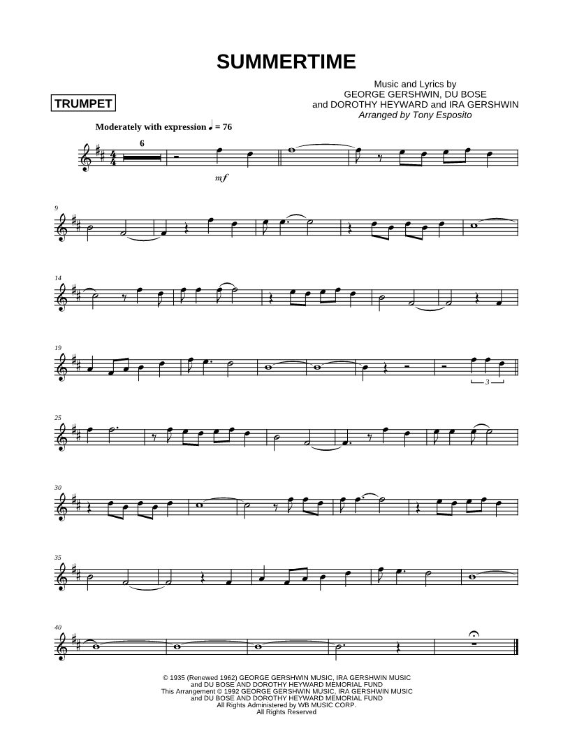 "Summertime written by George Gershwin is a music sheet written for a trumpet solo. A begin..." Read reviews