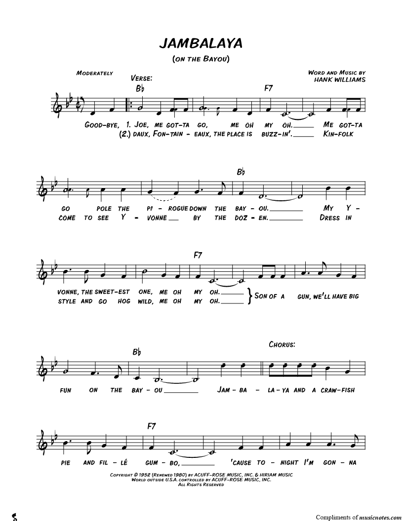 Leadsheets typically only contain the lyrics, chord symbols and melody line of a song and are rarely more than one page in length. Musicians will often use these skeletons to improvise their own arrangements. Leadsheets often do not contain complete lyrics to the song.