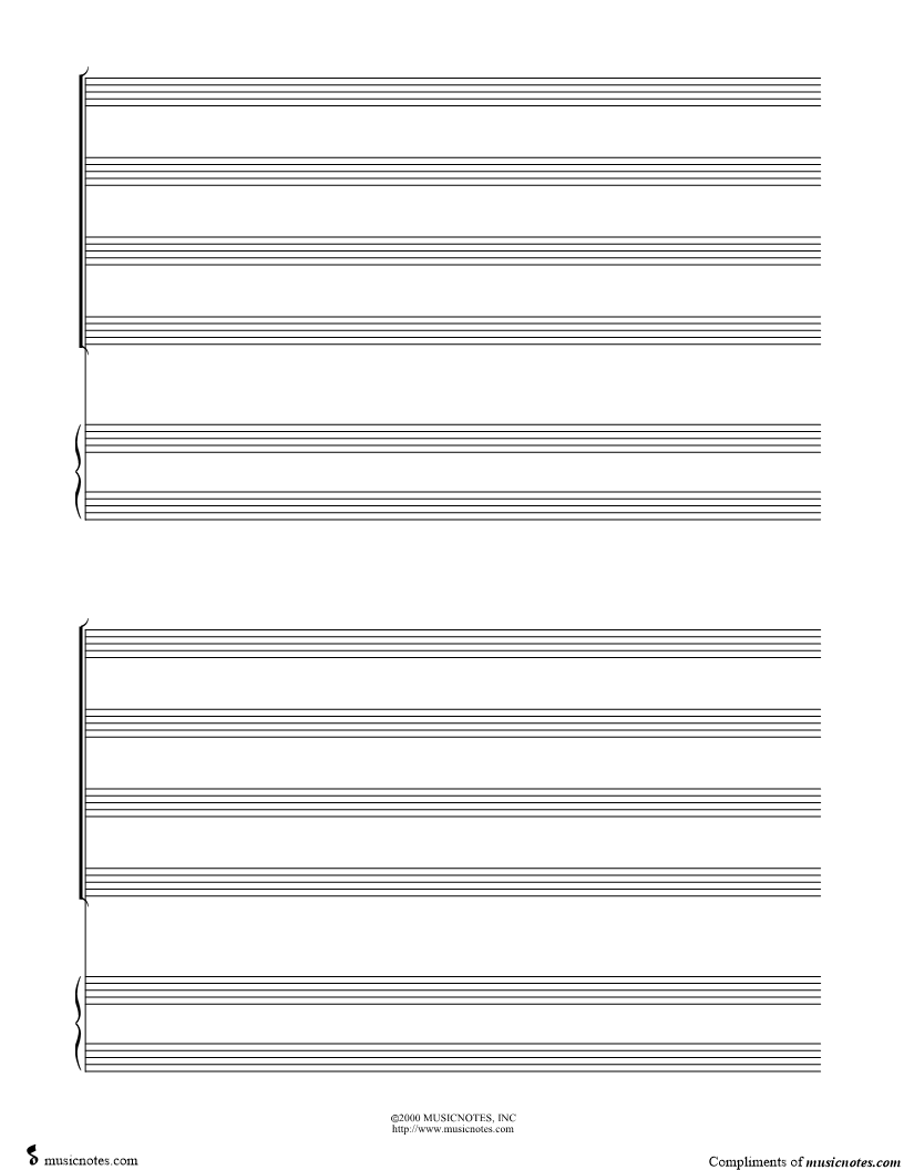 Manuscript Paper for Piano + Quartet (SATB) (Free Blank Sheet Music) |