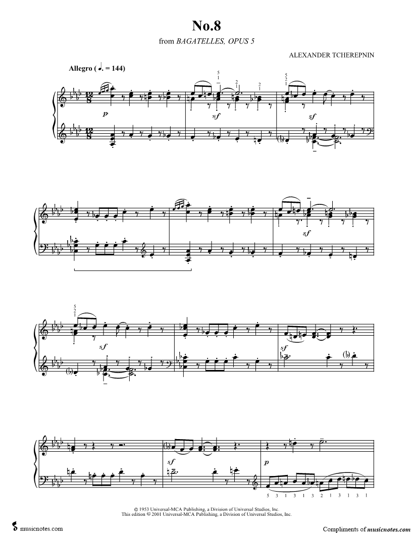 Alexander Tcherepnin Bagatelles, Opus 5 Ten Pieces for Piano |